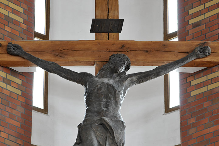 Krucyfiks Krucyfiks brąz kościół pw. św. Jadwigi Królowej Inowrocław Rzeźby w przestrzeni publicznejFlisakRejewskiSzwalbeWędrowiec - Biografika ArtystycznaWędrowiec IIBiegaczeRzeźby sakralneDrzwi Ośmiu BłogosławieństwKrucyfiksMałe formyTablice